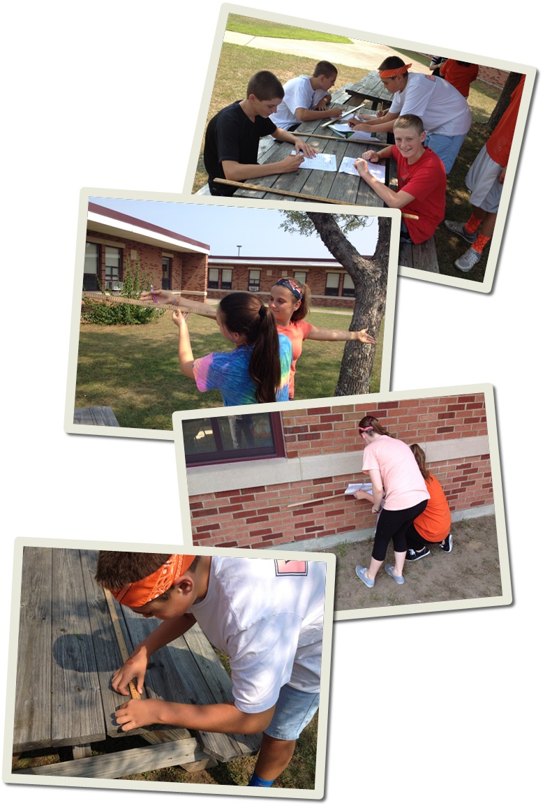 Today marked the first day of our review of The Metric System (also known as Standard International Units). Students were outside in the courtyard practicing the measurement of various things: their partner’s height, the width of a blade of grass, the volume of the entire courtyard, etc.