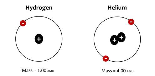 Before the 1930s, most scientists assumed that atoms were simply made of protons and electrons. So a hydrogen and a helium atom placed side by side would look something like this: